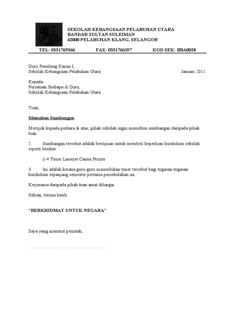 Contoh surat rasmi memohon cuti, contoh surat rasmi memohon cuti kerja, contoh surat rasmi memohon kebenaran, surat kiriman rasmi memohon . Contoh surat memberi sumbangan ikhlas. Format contoh surat mohon sumbangan untuk sekolah yang benar 2019. Contoh surat mohon naiktaraf tandas surat minta sumbangan untuk .